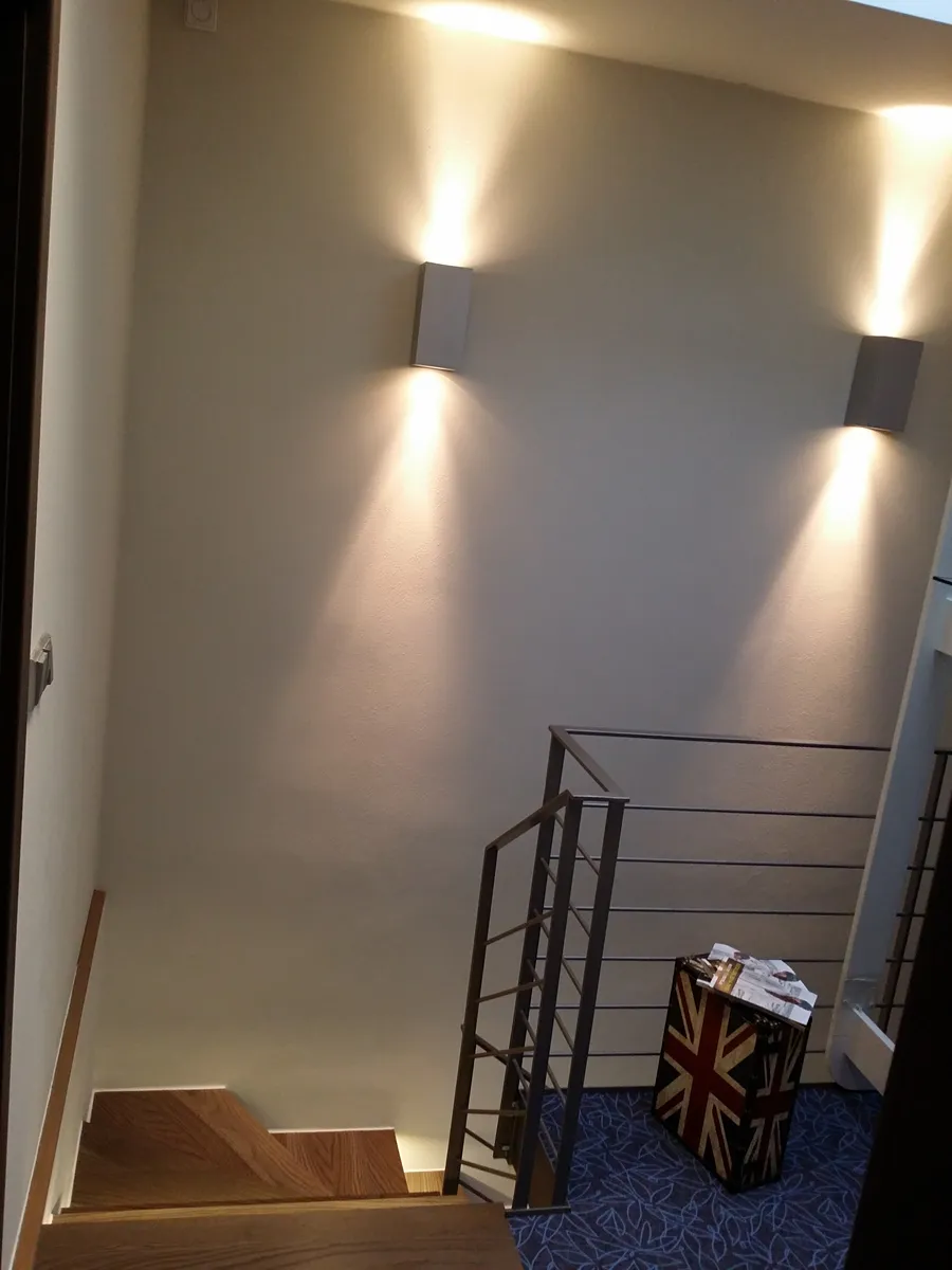 Dům má přízemí + 2 patra s futuristicky podsvíceným schodištěm (nutno vidět).