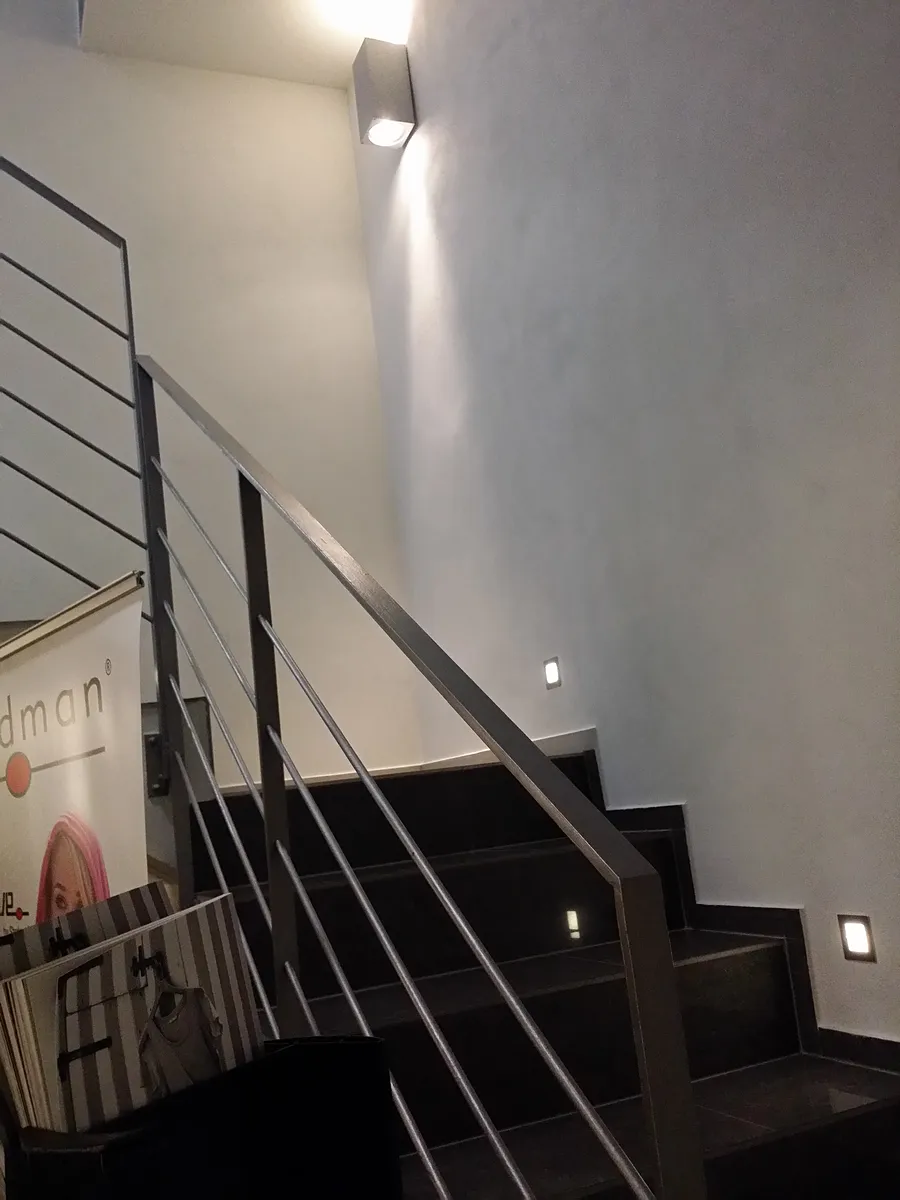 Nadstandartní provedení, bodová světla u podlahy, podsvícené schodiště.