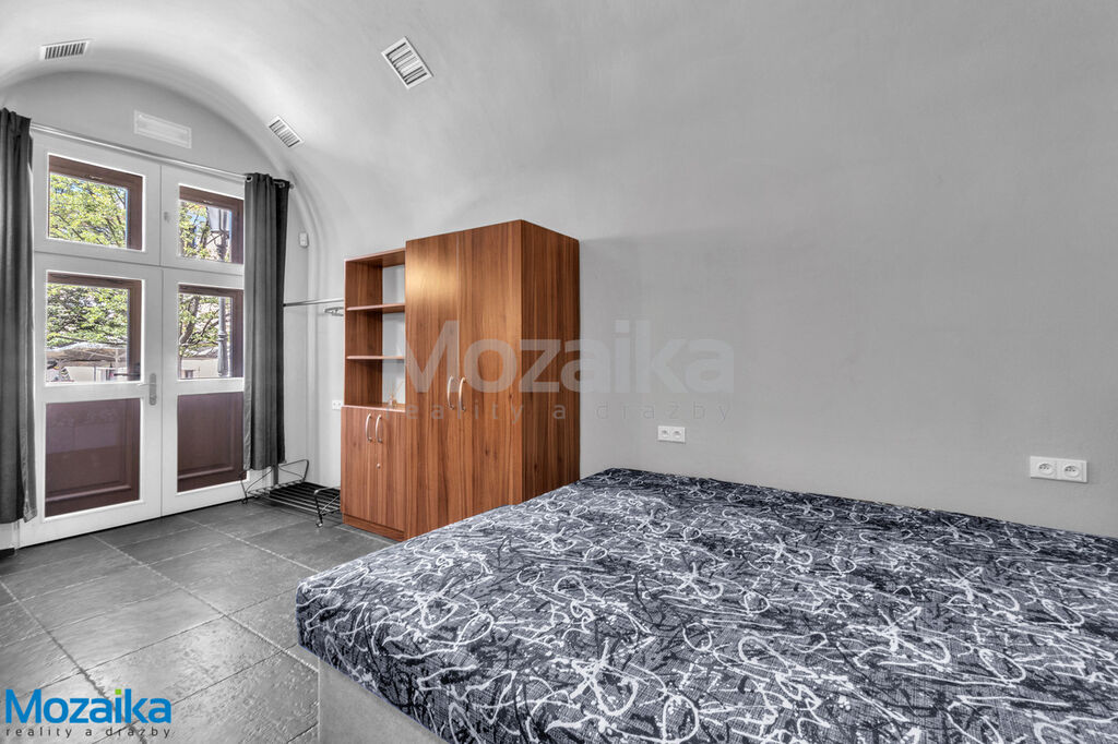 Co se týče dispozice bytu, je důležité zmínit, že mezi obytným prostorem a ložnicovou částí není klasická příčka s dveřmi, ale místo toho je zde použit závěs. Toto řešení dodává bytu otevřený a vzdušný charakter, nicméně vzhledem k této specifické dispozici není byt vhodný pro rodiny s dětmi. Jedná se skutečně o ideální prostor pro jednotlivce nebo bezdětný pár, který si užije komfortní bydlení v centru města.