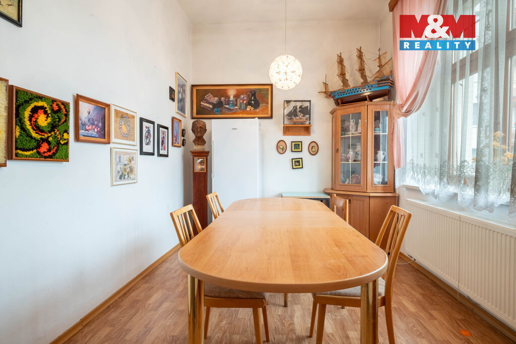 Třípodlažní dům s kompletním podsklepením nabízí dvě prostorné bytové jednotky 7+1 o ploše 180 m², které v roce 2005 prošly citlivou rekonstrukcí v původním stylu. V podkroví (60 m²) je obytný prostor vhodný pro hosty či volnočasové využití, v suterénu (180 m²) kotelna, dílna a sklad, s možností úpravy na další byt.