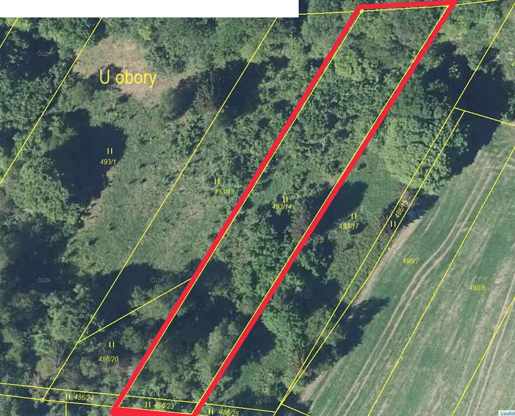 Prodáme louku se stromy (možno kácet) v k.ú. Nový Hrádek, parcely č. 493/14 a 486/23.