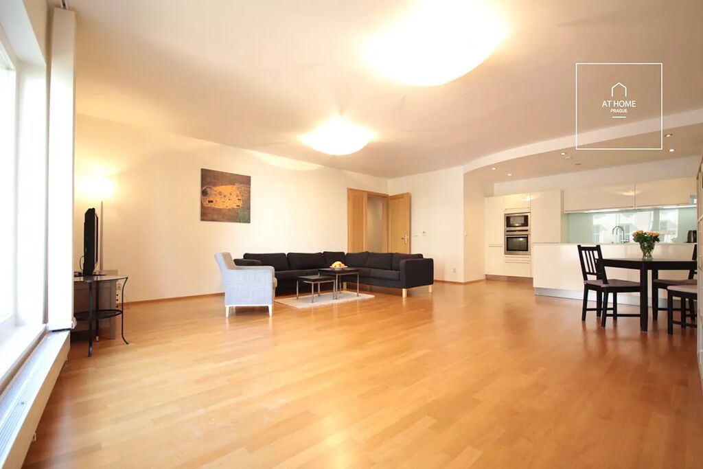Částečně zařízený, velmi kvalitní byt 4+kk ve 2. patře domu s výtahem. 130 m2: hala, obývací pokoj propojený s kuchyní, která je plně vybavena spotřebiči, sklokeramická varná deska. Z obývací části krásný výhled do zeleného vnitrobloku. Dvě ložnice s vlastními koupelnami a vestavěnými skříněmi, třetí ložnice, oddělená toaleta a komora. Videotelefon, alarm a bezpečnostní dveře. K dispozici sklepní prostor 2x2m2. Na rozdíl od fotografií je zařízen pouze obývací pokoj. Energetický štítek C. V domě recepce a nové garáže s automatickým parkováním. Skvělá, tichá lokalita v přímém centru města blízko Václavského náměstí. Výborná dopravní dostupnost, stanice metra B - Náměstí Republiky, přestupní stanice metra A a B - Můstek. Byt volný od února 2026.