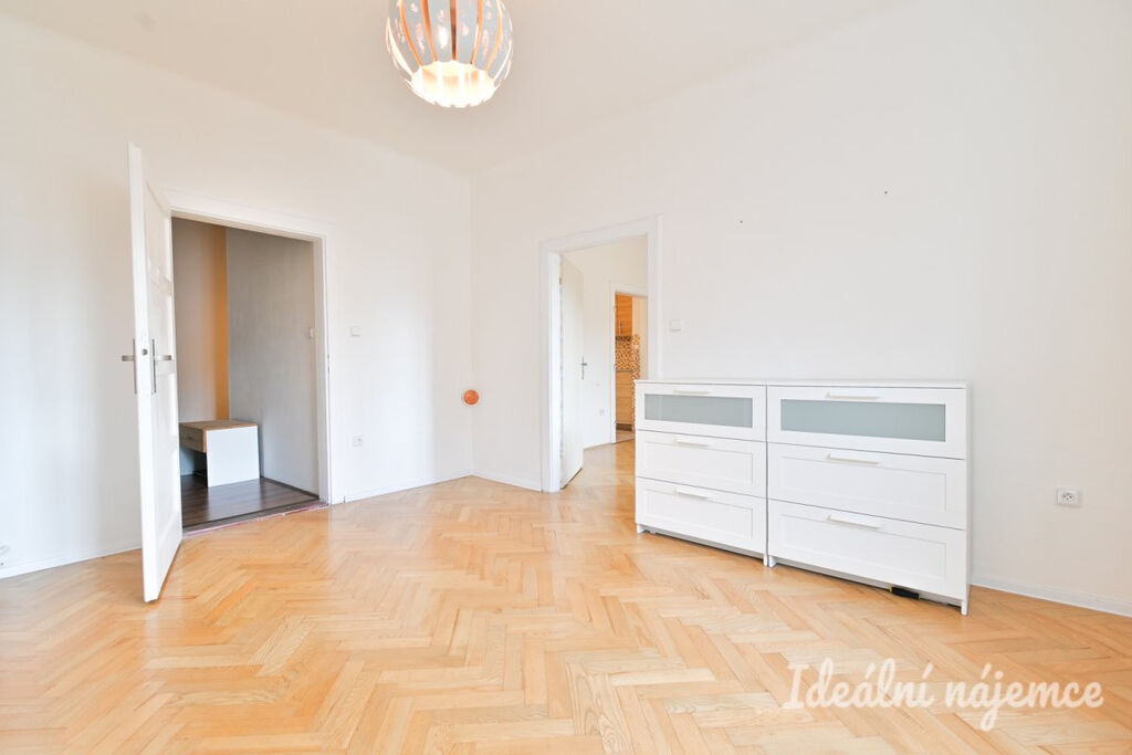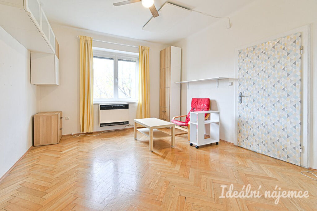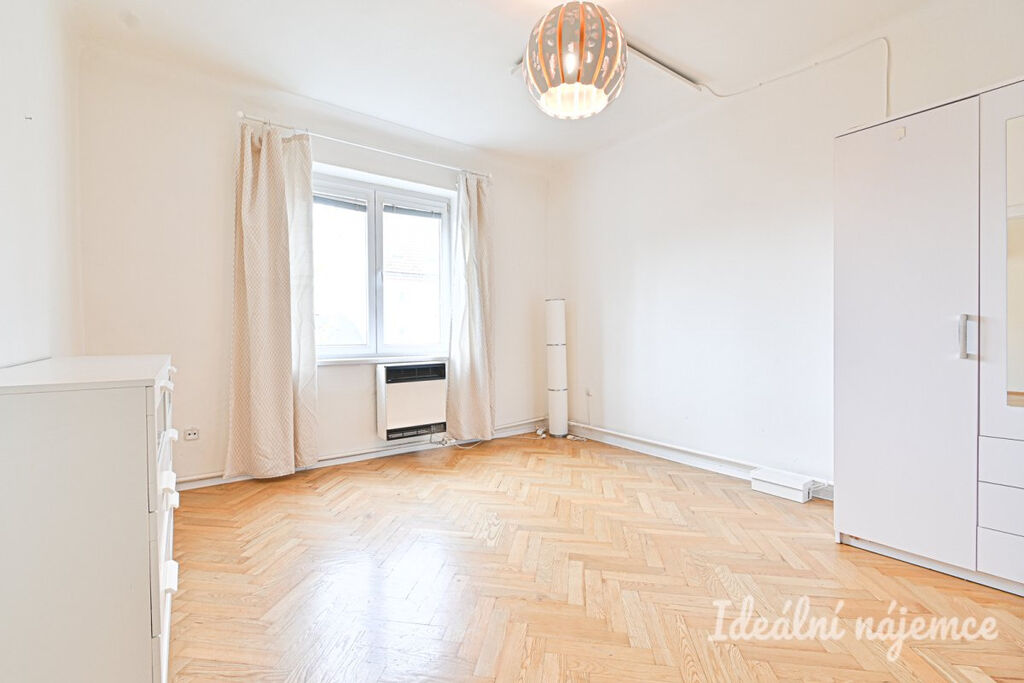 Byt se nabízí vybavený dle fotografií. Interiér tvoří světlý obývací pokoj s velkými okny, samostatnou kuchyni a ložnici. V koupelně je vana i umyvadlo, toaleta je umístěna samostatně. V bytě dále najdeme praktickou komoru a šatnu. Na podlahách jsou parketové podlahy.
