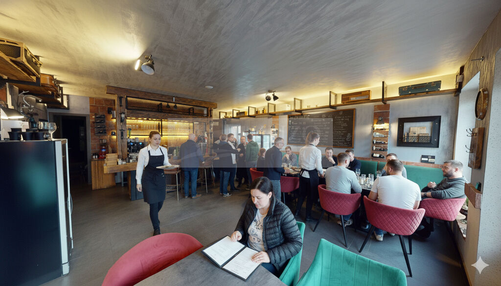 Kapacita 35 míst uvnitř a 15 míst na venkovní terase.