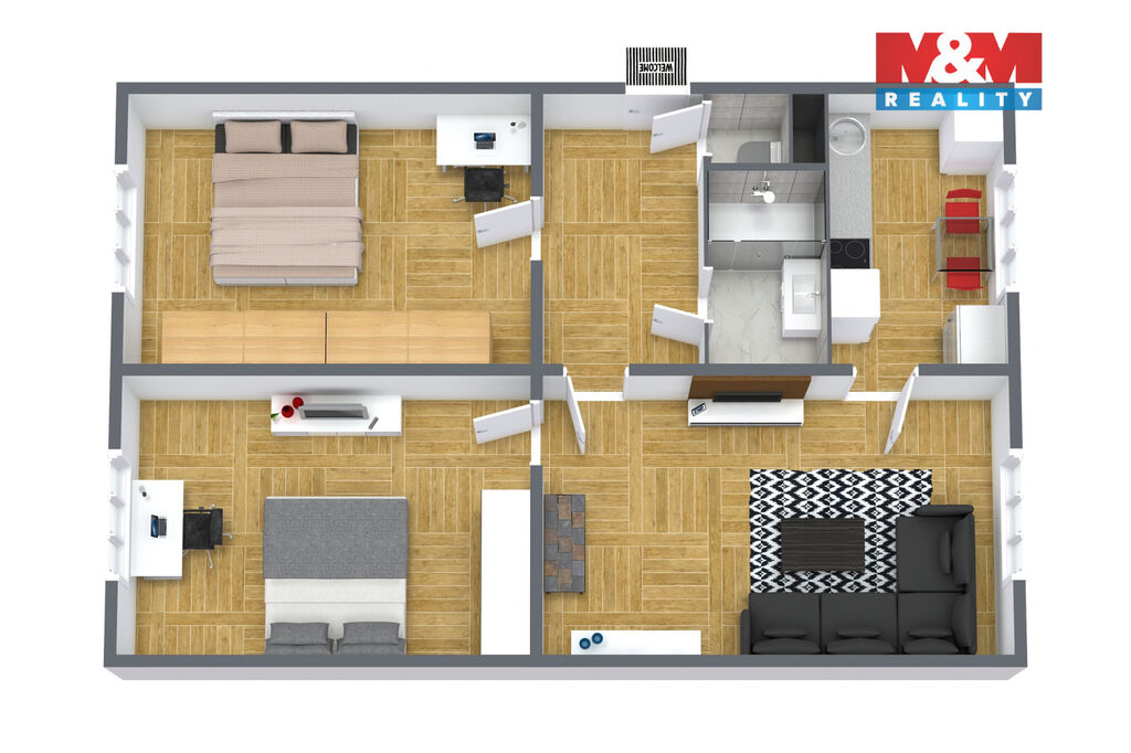 dvě prostorné ložnice – ideální jako ložnice, dětský pokoj či pracovna
