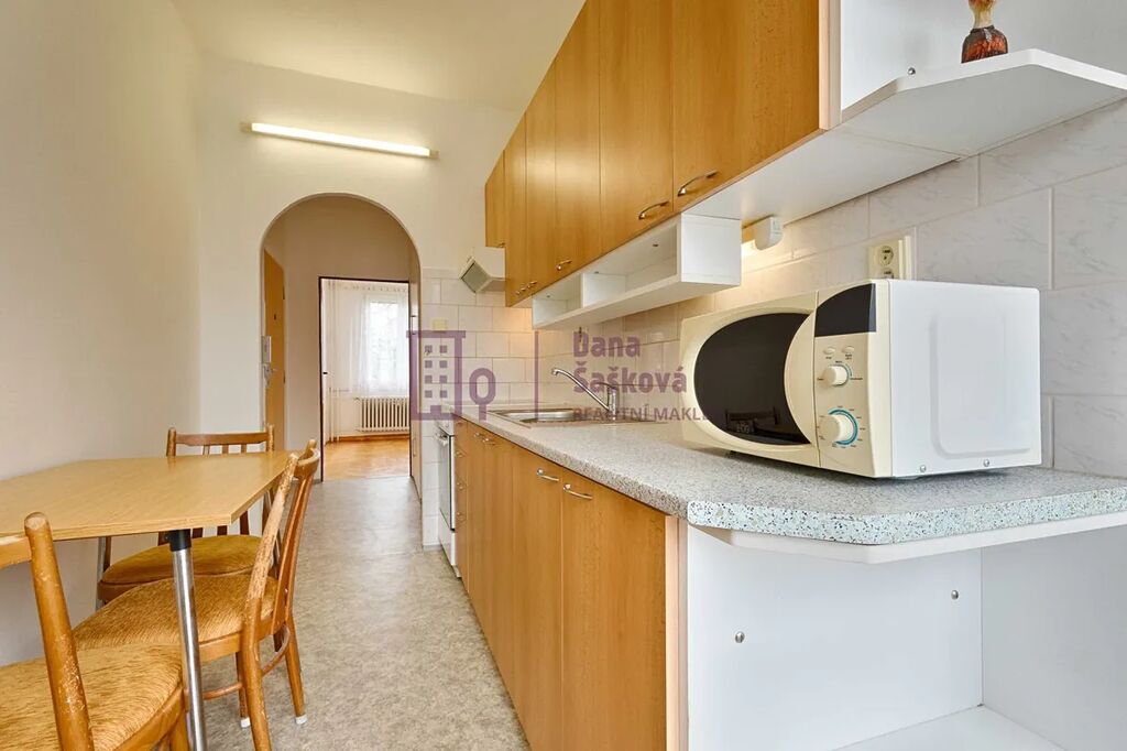 Byt orientovaný na jihozápad a severovýchod je vybavený kuchyňskou linkou, elektrickým sporákem, digestoří, mikrovlnnou troubou, jídelním stolem se dvěma židlemi a vestavěnou skříní v chodbě.