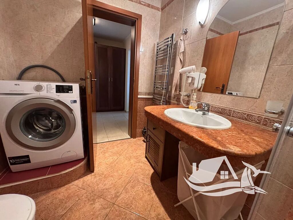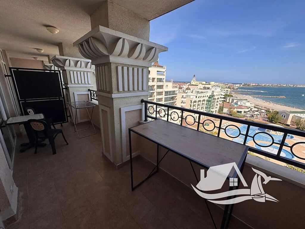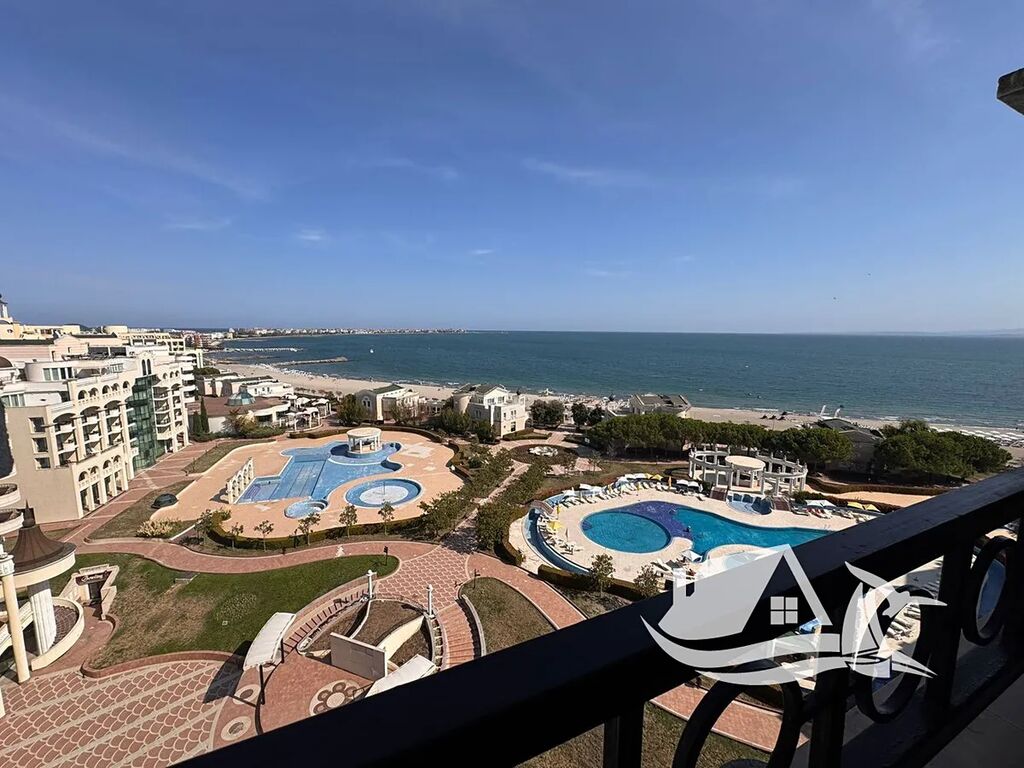 V prestižním pětihvězdičkovém komplexu Sunset Resort v Pomorie nabízíme jedinečný apartmán 3+kk o ploše 88 m², situovaný v 8. patře hlavní budovy, jen pár kroků od pláže. Z obývacího pokoje a hlavní ložnice se otevírá přímý frontální výhled na moře – panorama, které se nikdy neomrzí. Druhá ložnice je menší, s dvěma lůžky a bez okna – ideální pro děti či hosty.