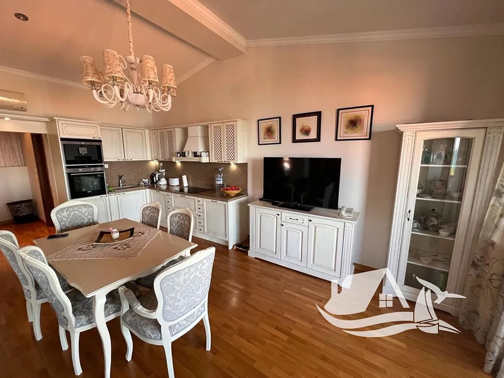 V soukromém komplexu zasazeném do zelených svahů se nachází tento prostorný a nově zrekonstruovaný apartmán 3+kk o rozloze 114 m², umístěný ve 4. patře. Světlý obývací pokoj s kuchyňským koutem plynule navazuje na terasu, odkud se otevírá dechberoucí výhled na moře. Dvě ložnice nabízí klid a soukromí, koupelna s toaletou doplňuje promyšlené a pohodlné uspořádání. Interiér je čerstvě vybavený a připravený k okamžitému užívání.