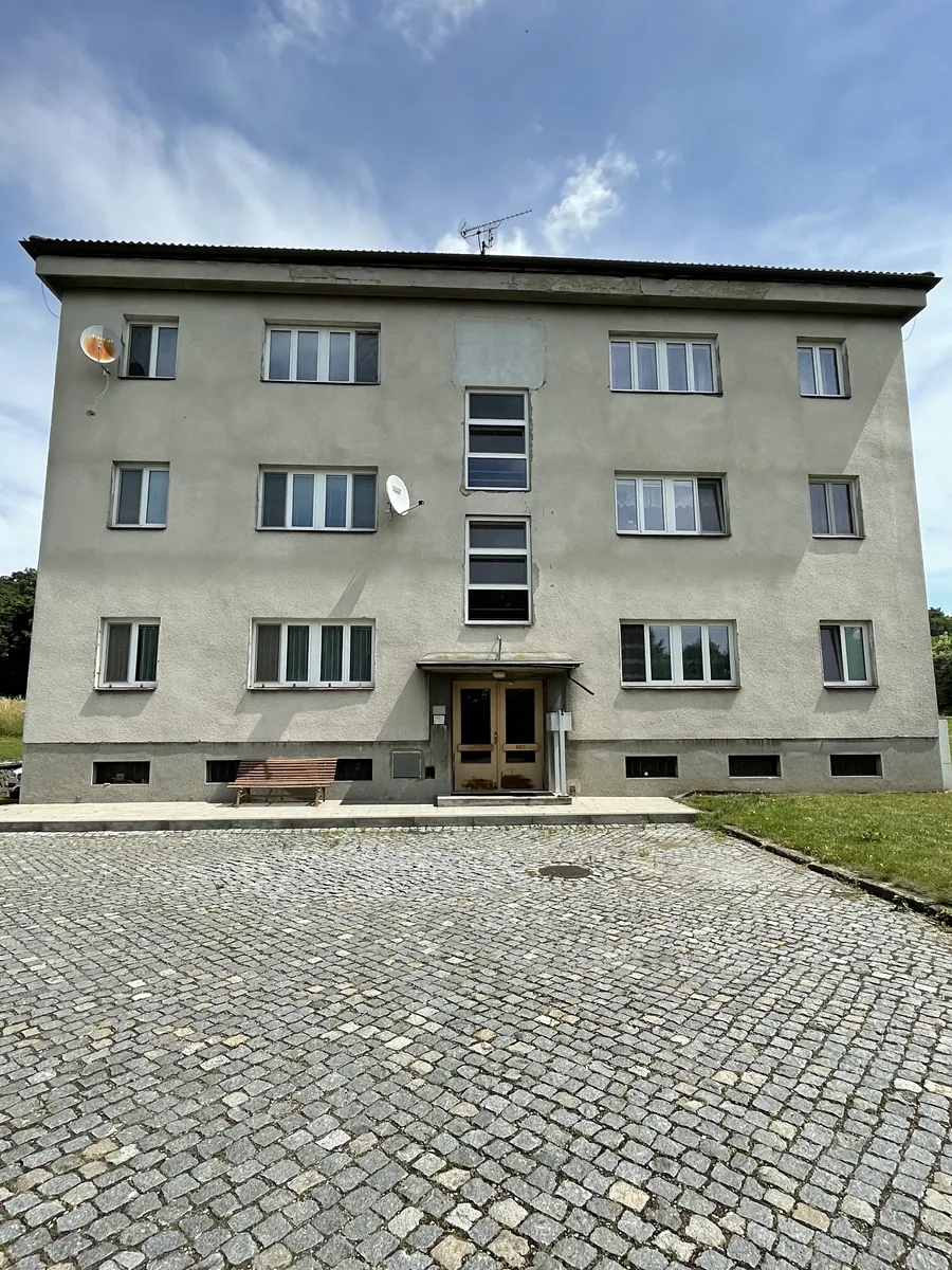 Prodej podílu 1/6 na bytě o velikosti 3 + 1 v 2. nadzemním podlaží. Okna jsou plastová včetně žaluzií, bytové jádro je zděné. Kuchyňská linka s částečně vestavěnými spotřebiči. V koupelně je vana, umývadlo, samostatné WC. Součástí bytu je pozemek, na kterém se nachází nezapsaná stavba garáží. Jedná se o přízemní stavbu s rovnou střechou, kde se nachází 6 garáží, každá garáž má plechová vrata. Dále na pozemku se nachází dřevěný altán. Oplocení pozemku tvoří pletivo s podezdívkou z příjezdové strany.