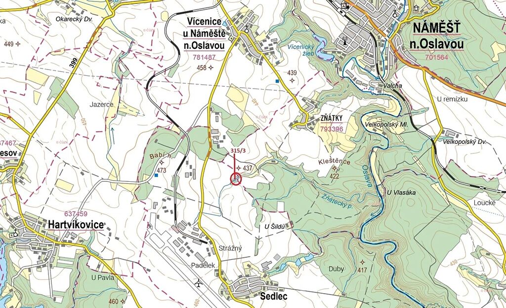 Ostatní plocha o výměře 798 m2, parcelní číslo 315/3, podíl 1/1, katastrální území Sedlec u Náměště nad Oslavou, obec Sedlec, obec s rozšířenou působností Náměšť nad Oslavou, okres Třebíč, Kraj Vysočina.
