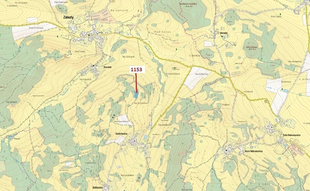 Ostatní plocha o výměře 3813 m2, parcelní číslo 1153, podíl 1/1, katastrální území Setěchovice, obec Zálezly, obec s rozšířenou působností Vimperk, okres Prachatice, Jihočeský kraj.