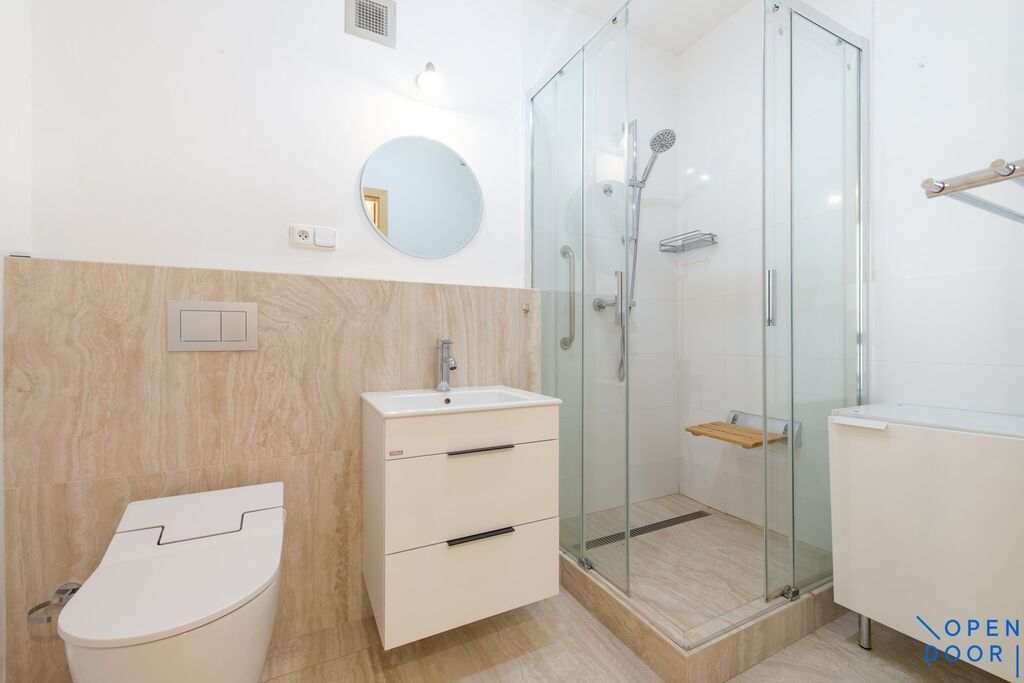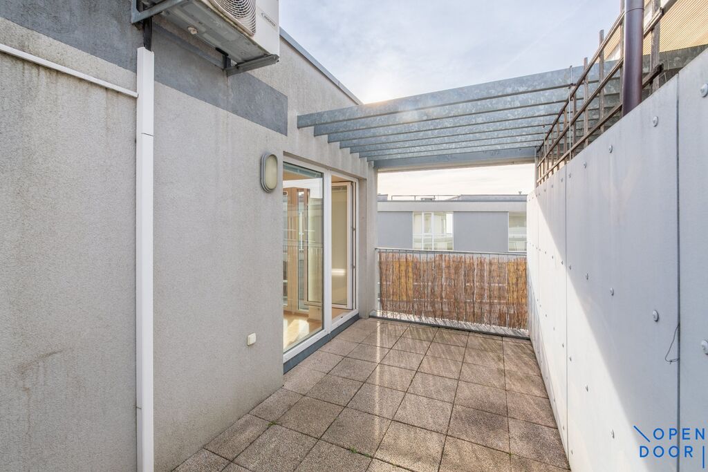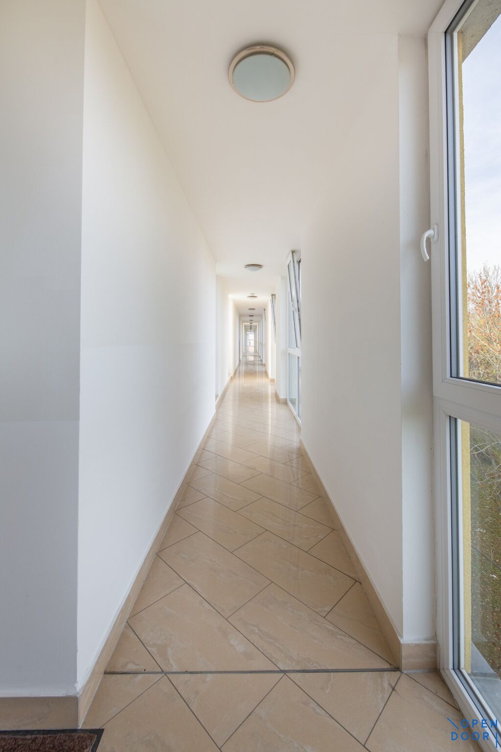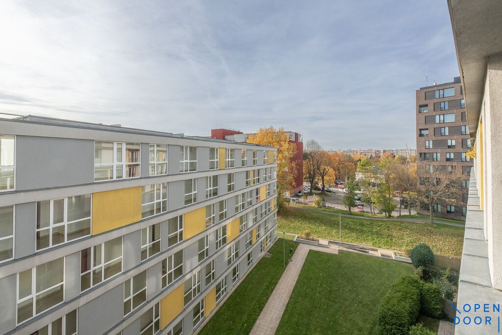 Byt se nachází v posledním patře moderního bytového komplexu s výtahem, je částečně zařízený – komplet kuchyňská linka s lednicí, varnou deskou, troubou, mikrovlnnou troubou a digestoří. Ze vstupní haly je přístup do všech místností bytu – ložnice, obývacího pokoje s kuchyňským koutem, koupelny se sprchovým koutem a komory ideální jako úložný prostor. Obývací pokoj má klimatizační jednotku a vstup na prostornou cca 20 m² terasu. V ceně pronájmu je také kryté garážové stání. V bytě dále je k dispozici podlahové topení, zabezpečovací zařízení EZS.