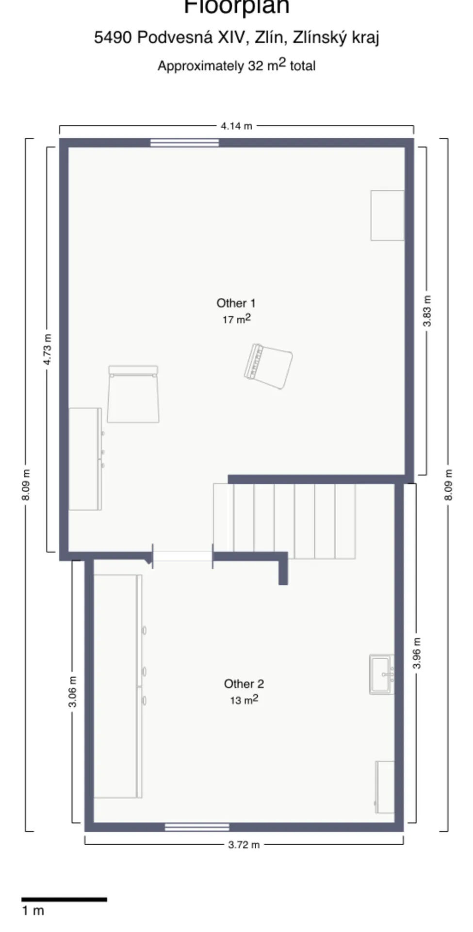Dům s dispozicí 3+1 má obytnou plochu 68 m² a k tomu velkorysé zázemí – sklep o velikosti 32 m² a garážovou dílnu, kterou lze přestavět na prostornou přístavbu.