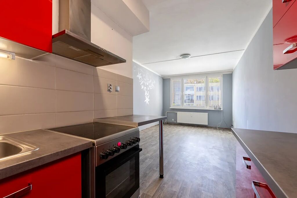 Dispozice bytu zahrnuje vstupní chodbu, obývací pokoj s kuchyňským koutem, samostatnou ložnici a koupelnu s toaletou. K bytu náleží i praktická komora umístěná na stejném patře, hned vedle vstupních dveří. Byt je v dobrém stavu a je připraven k okamžitému nastěhování.