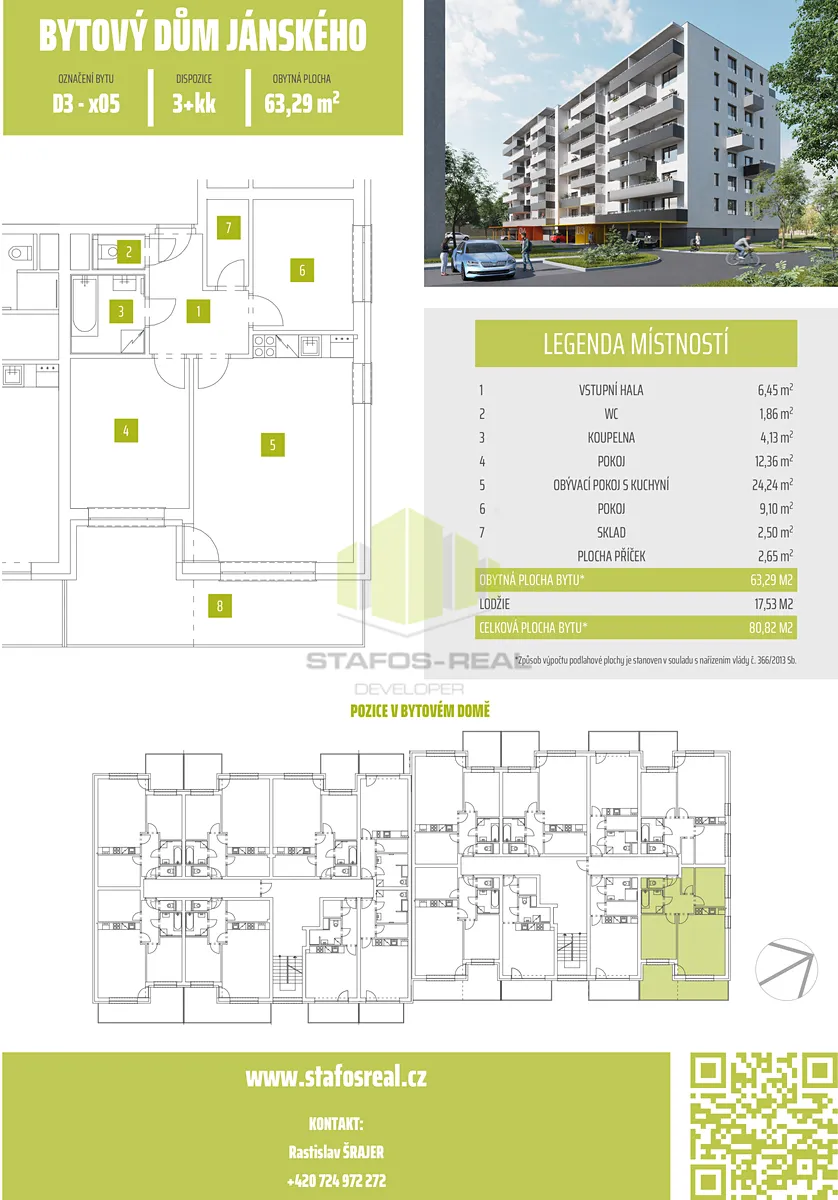 Představujeme vám jedinečnou příležitost k pronájmu novostavby moderního bytu 3+kk s užitnou plochou 63,29 m2 a lodžií o rozloze 17 m2. Tento byt se nachází v 7. nadzemním podlaží kvalitní novostavby, která bude dokončena na přelomu září/říjen 2025. Těšit se můžete na prestižní lokalitu na ulici Janského, v oblíbeném olomouckém obvodu Povel.