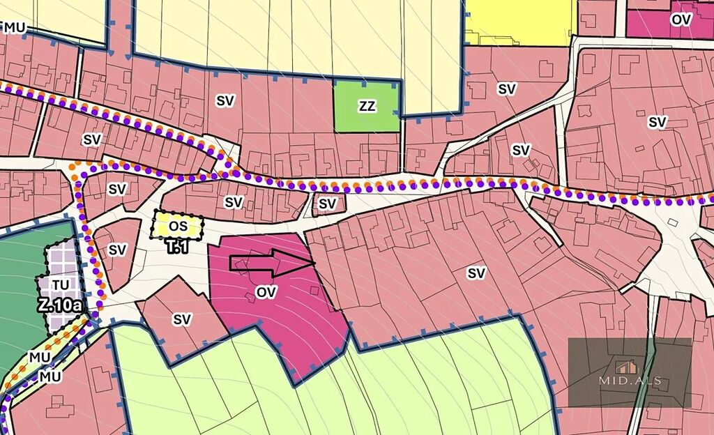 Pozemek je dle územního plánu určen k bydlení smíšené, venkovské, obytné bydlení a k výstavbě rodinného domu  a nabízí ideální místo pro klidné bydlení v dosahu města. Příjezdová cesta je obecní a zpevněná. Na hranici pozemku je přípojka elektřiny, napojení na vodovod, kanalizaci a plyn je možné z přípojek sousedního domu.