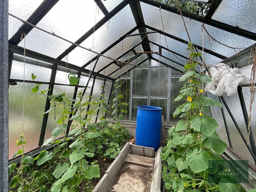 Je ideální pro skutečné zahradní nadšence, zahrada má zavedené vyvýšené i přízemní záhonky, dva skleníky, prostor pro posezení a grilovačku s přáteli, zázemí ve formě zahradního domku. Stín poskytuje vzrostlá a plodící třešeň, stejně tak borovice. Najdete zde meruňku, švestku, jabloně, broskev, také slaďoučké maliny, jahody či borůvky, bylinky všeho druhu, zeleninu na jakou si jen vzpomenete, vinnou révu, barvitost podtrhnou okrasné květiny, nádhera pohledět !
