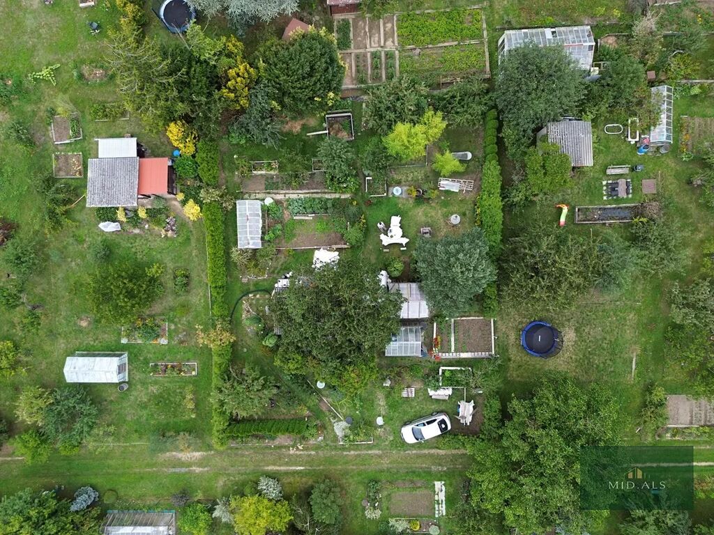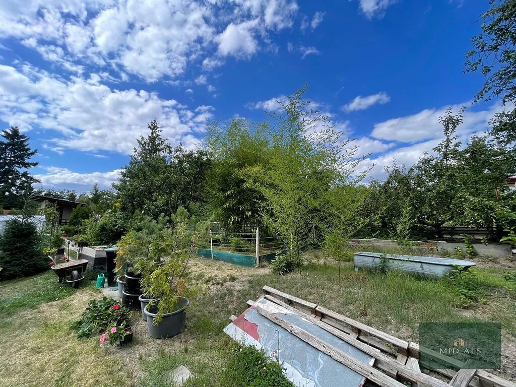 Celková plocha zahrady je krásných 700 m2, a je tvořena dvěma parcelními čísly. Na jedné parcele stojí zděná, podsklepená zahradní chata s přivedenou elektřinou o výměře zastavěné plochy 9 m2.