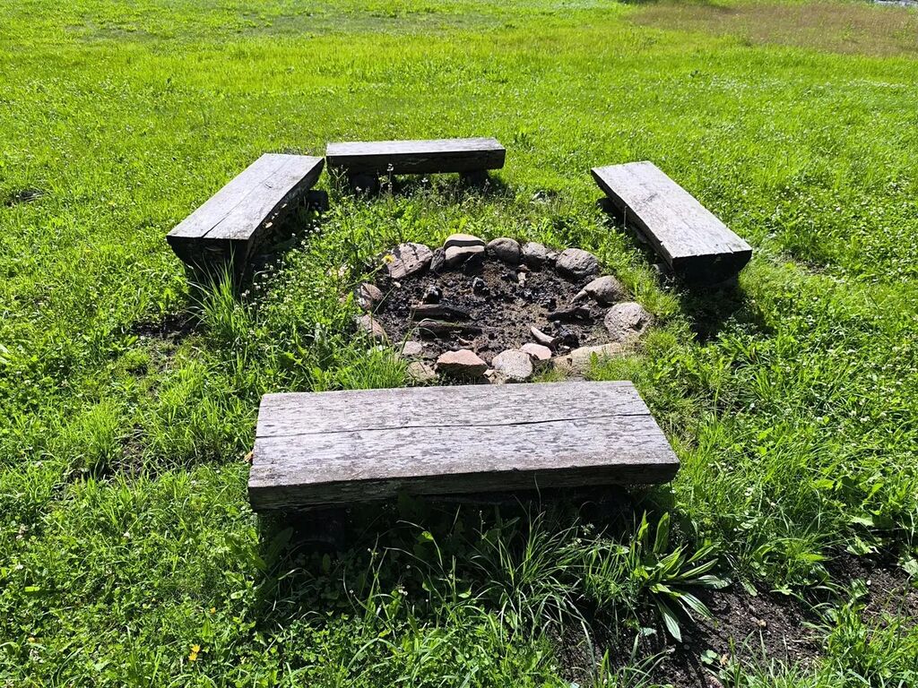 K areálu náleží podíl na oplocené zahradě s dětským hřištěm, ohništěm a posezením.