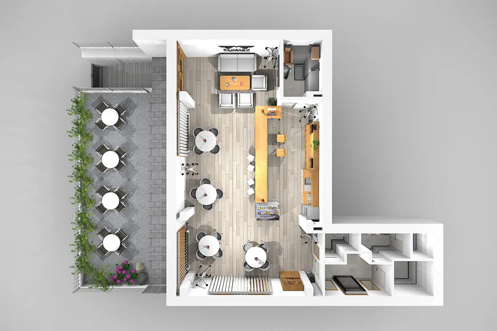 K jednotce náleží prostorná terasa se zahrádkou o výměře 113 m², přístupná přímo z ulice – ideální pro venkovní posezení, prezentaci služeb či komerční využití dle vašich potřeb. Součástí prodeje je rovněž 1 vyhrazené parkovací místo na společném pozemku.