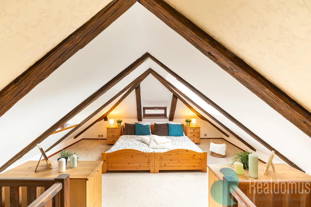 Horní patro bytu tvoří soukromá zóna s ložnicemi, které nabízejí klid, pohodlí a dostatek soukromí.