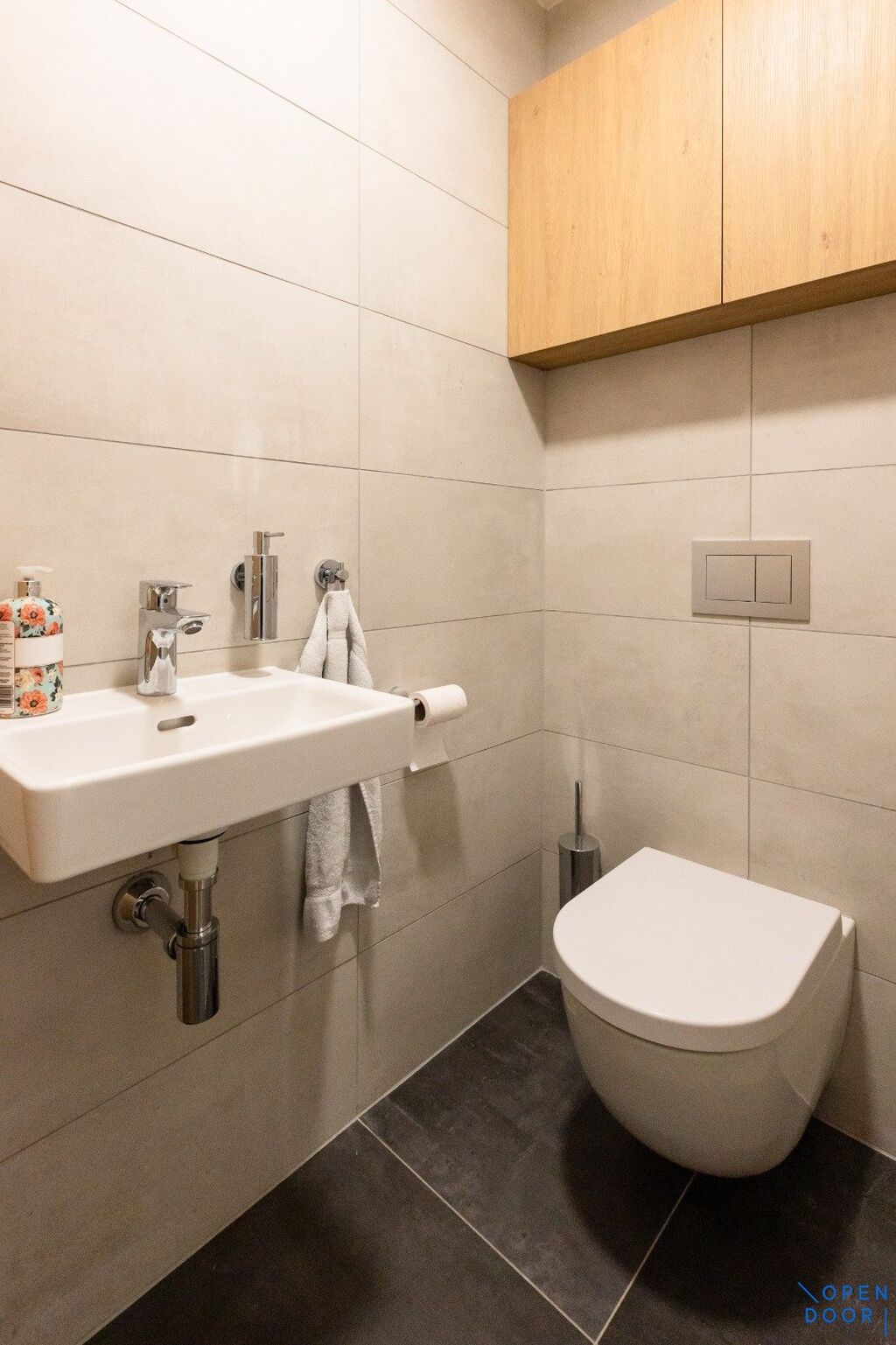 V předsíni je na míru vyrobená šatní skříň a věšáková stěna. Je zde také toaleta pro hosty.
