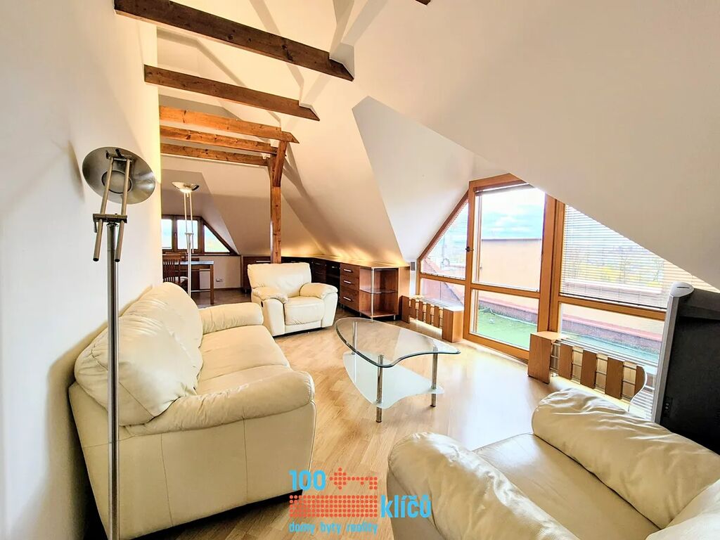 5.NP - 111 m2 - Podkrovní byt s obývacím pokojem, jídelnou, kuchyní, ložnicí, koupelnou s rohovou vanou, šatnou a balkonem s úchvatným výhledem na město.