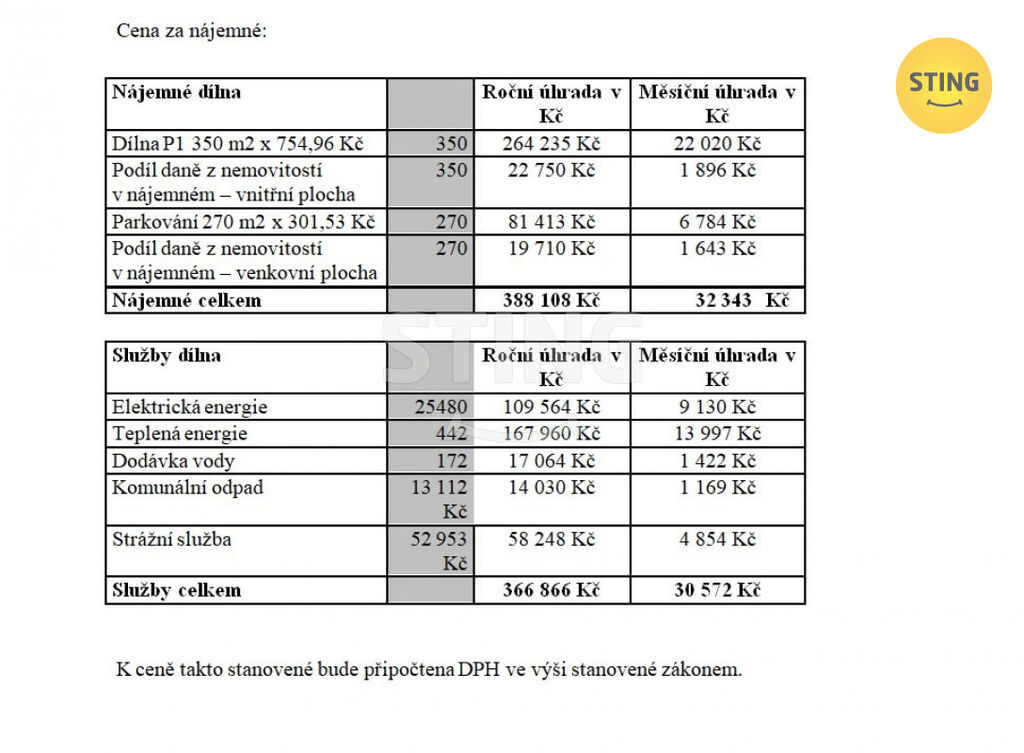 Kauce je ve výši tří měsíčních plateb a provize rk je ve výši jednoho měsíčního nájmu včetně DPH.
