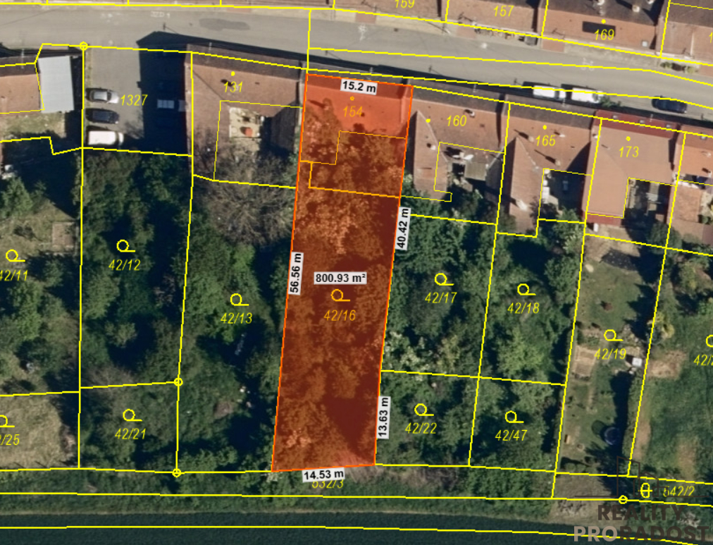 V zastoupení majitele Vám nabízíme stavební pozemek o výměře 801m2 ve slepé ulici obce Uhřice. Uliční šíře je 15m a délka pozemku 56m. Na pozemku se nachází současná stavba rodinného domu v havarijním stavu určena k demolici. Zastavěná plocha stávajícího domu je 137m2. Dispozici tvoří průjezd, chodba, kuchyně, koupelna s WC a 3 pokoje. Za domem se nachází dvůr, přístřešek a studna. Dále navazuje zahrada do svahu.