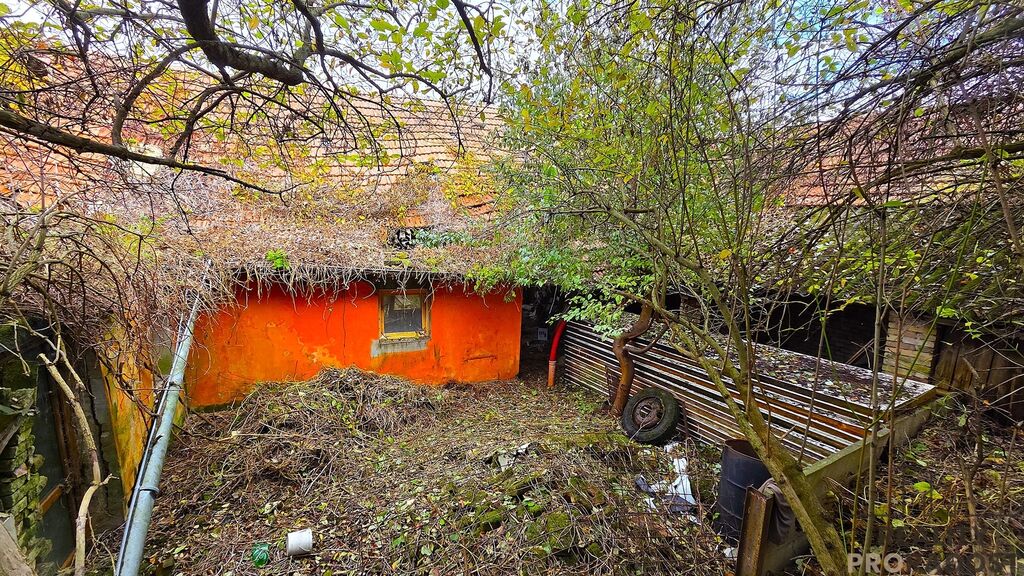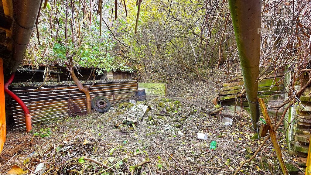 Zahrada je svažitá, prostorná a s velkým potenciálem. Po letech bez údržby je aktuálně zarostlá náletovými dřevinami.