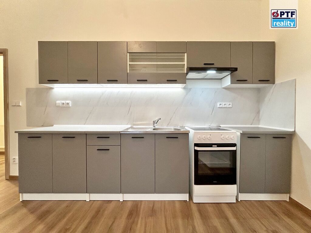Kromě kuchyňské linky se spotřebiči (sporák, digestoř) je byt nezařízený.