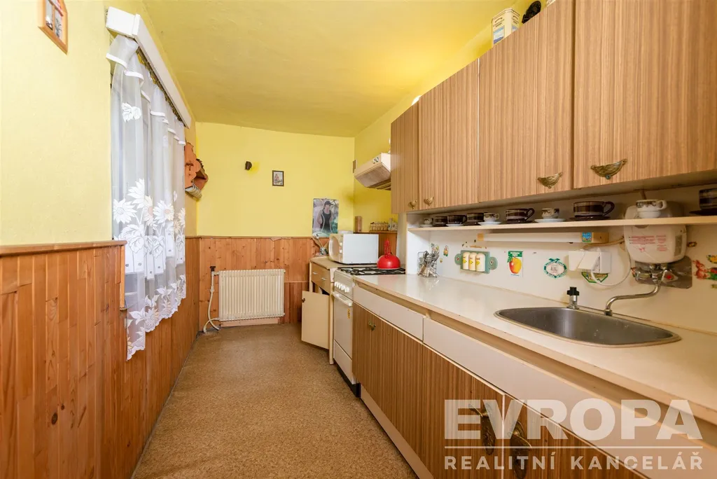 Přízemí: prostorný obývací pokoj, jídelna, kuchyně, ložnice, koupelna, samostatné WC a kotelna