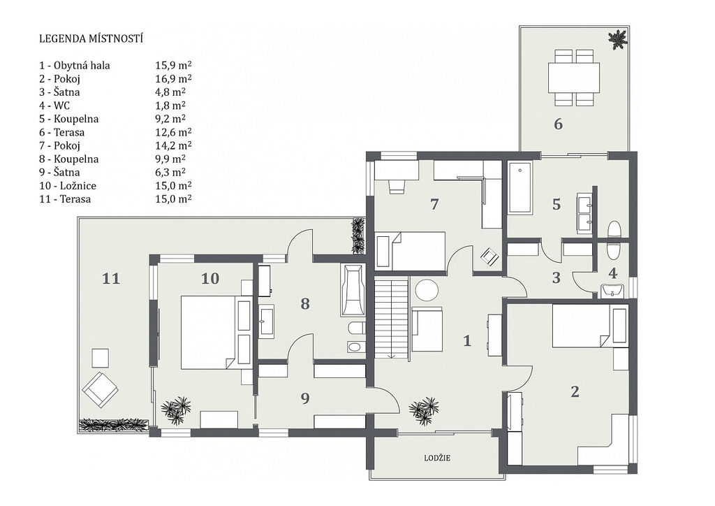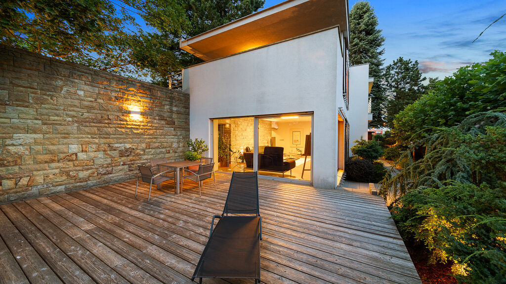 Každý člen vaší rodiny zde najde svůj malý kousek vesmíru. Propojení života s přírodou tady ucítíte všemi smysly. Jezírko se zvukem padající vody, stromy rostoucí do nebe, okouzlující výhledy z každé části domu ve vás vyvolají netradiční proud emocí a klidu.