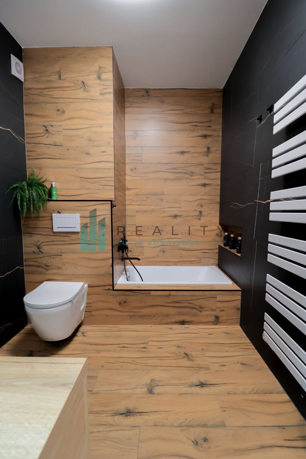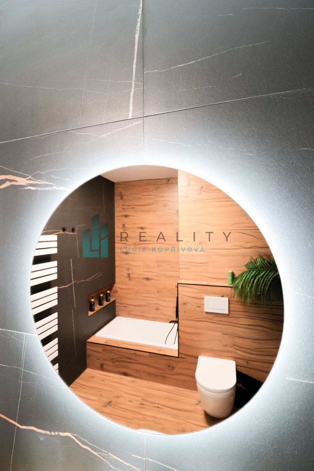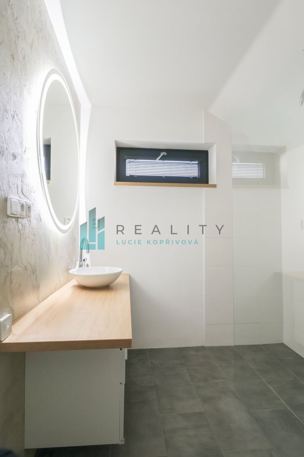 Dále pak dům nabízí prostory pracovny, ložnici a dva dětské pokoje, kdy z jednoho je nyní prostorná šatna, dvě koupelny jedna s vanou a druhou se sprchovým koutem a dvě toalety, každá v jednom patře, terasu, technickou místnost a garáž.