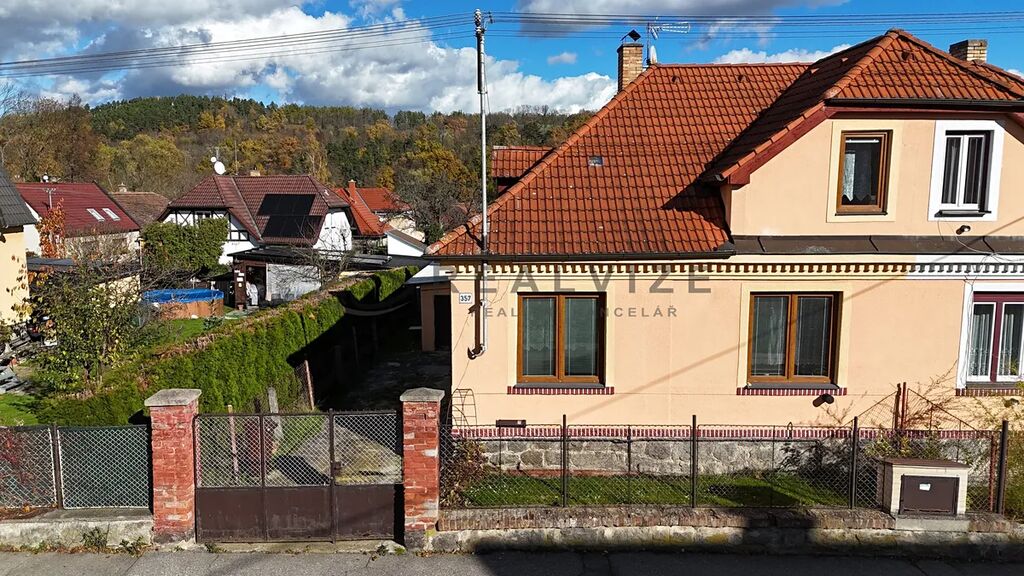 Nabízíme k prodeji rodinný dům se zahradou a garáží v malebném městečku Volyně u Strakonic. Jedná se o "řadový" dům, kdy jedna stěna je společná s vedlejším domem. Postavený byl cca v roce 1945. Je v udržovaném stavu. V roce 2013 byla vyměněna okna za plastová zn. Vekra, rovněž střešní krytina byla měněna kolem roku 2013 za betonovou tašku. Dům je vytápěn plynovým kotlem (cca 10 let starý) s možností přepnutí na kotel na tuhá paliva. Kotle jsou umístěny v prádelně, do které se jde přes vstupní verandu. Dispozice domu je 3+1, kdy ve zvýšeném přízemí se nachází obývací pokoj, ložnice, kuchyně se spižírnou, samostatné WC a starší sprchový kout. V podkroví je jeden pokoj a prostorná půda. Voda je přivedena z obecního řadu s možností čerpat i užitkovou vodu ze studny společné se sousedním domem. Odpad je sveden do obecní kanalizace. Na dům navazuje stodola a garáž. Na stodole byla cca v letech 2012/2013 vyměněna střecha - krov a střešní krytina (plechová). Za stodolou a garáží se rozprostírá obdélníková zahrada (12 x 19 m) s výměrou 228 m2, kde zhruba uprostřed stojí plodící jabloň.
