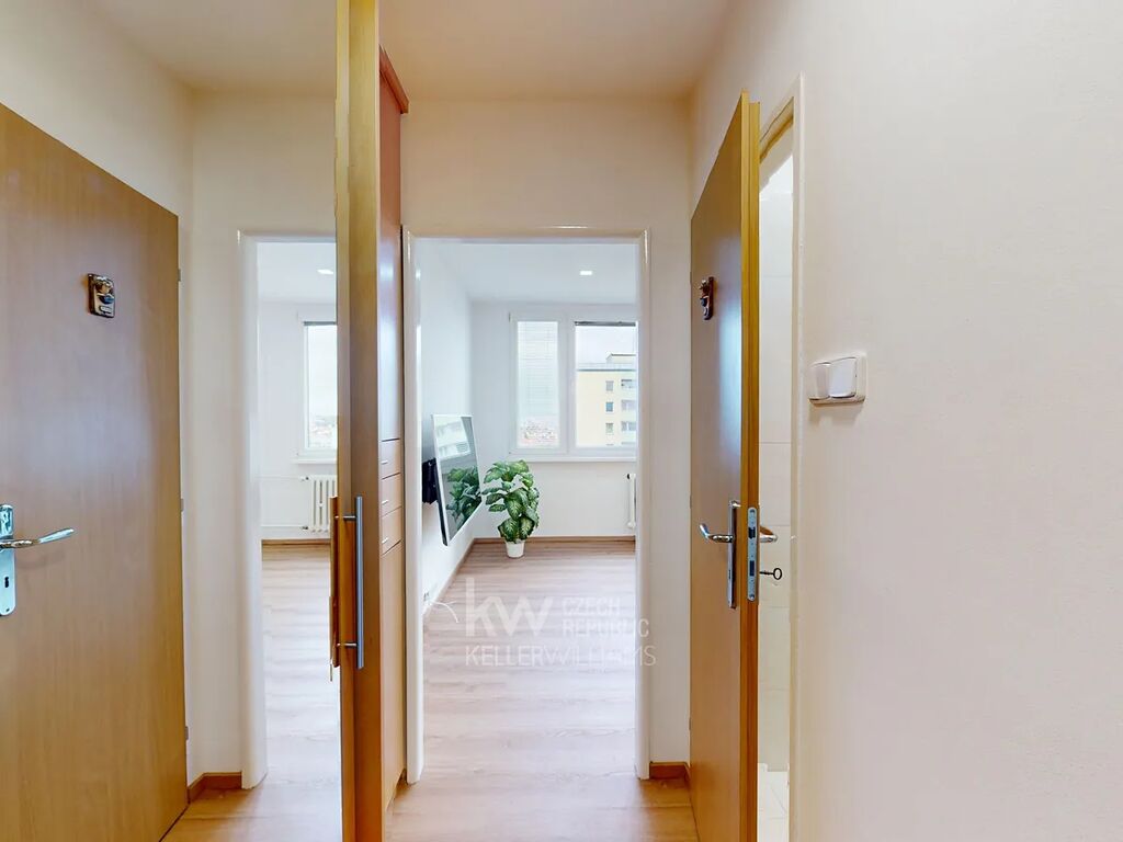 Byt prošel čerstvou rekonstrukcí a potěší Vás množstvím vestavěných skříní i velkou komorou přímo v bytě, která se na fotkách neobjevila jen proto, že tam ještě měli nářadí řemeslníci.