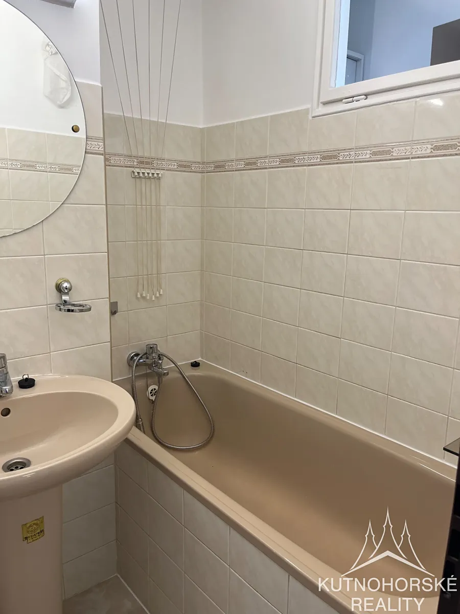 Byt je částečně vybaven - kuchyňská linka se spotřebiči, myčka, lednička, pračka + nábytek (viz. foto).