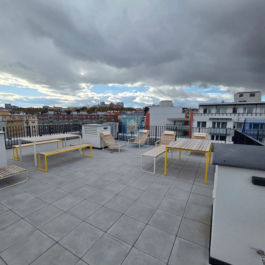 Komplex disponuje společnou střešní terasou s výhledem, která umožňuje obyvatelům užívat si nádherný panoramatický výhled na oblíbené pražské dominanty. Tato jedinečná možnost Vás okouzlí při každé návštěvě terasy, ať už se rozhodnete pro grilování s přáteli, nebo klidné chvíle strávené se sklenkou vína.