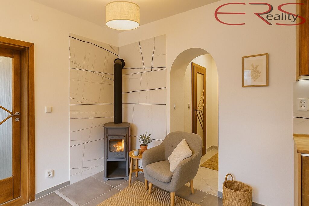 A vytápění? Na výběr máte: moderní infrapanely, klimatizace nebo krbová kamna, když chcete hrát na romantiku. V koupelně navíc podlahové topení, takže ráno žádný tanec „au, dlaždičky!“.