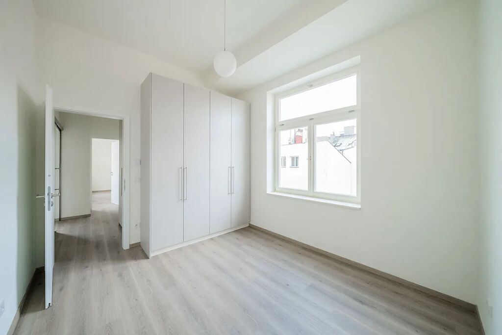 Nově zrekonstruovaný moderní byt 3+kk (2 ložnice, 1 koupelna), o celkové ploše 65,02 m², je situovaný ve 4.NP s výtahem, v budově v klidném vnitrobloku, která se nachází se ve vyhledávané lokalitě v Praze 1, na Václavském náměstí.