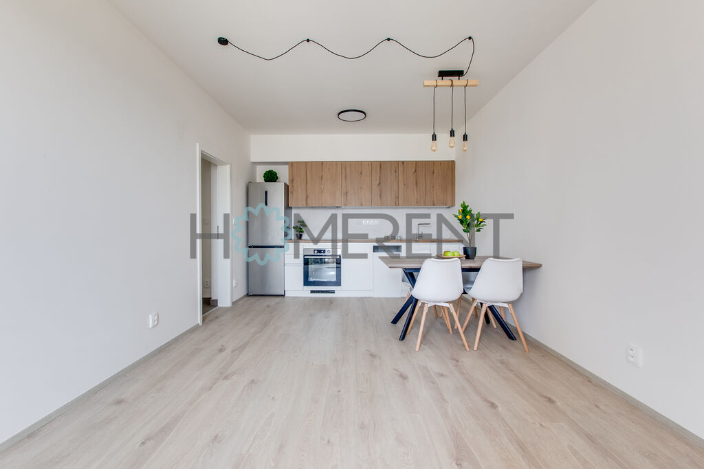 Byt je částečně zařízený – moderní kuchyně se spotřebiči, světlý obývací prostor s přístupem na lodžii, ložnice s úložnými prostory, koupelna s vanou a vestavěnou pračkou. Celý byt je krásně prosvětlený a nachází se v příjemném prostředí obklopeném zelení. V bytě ještě nikdo nebydlel.