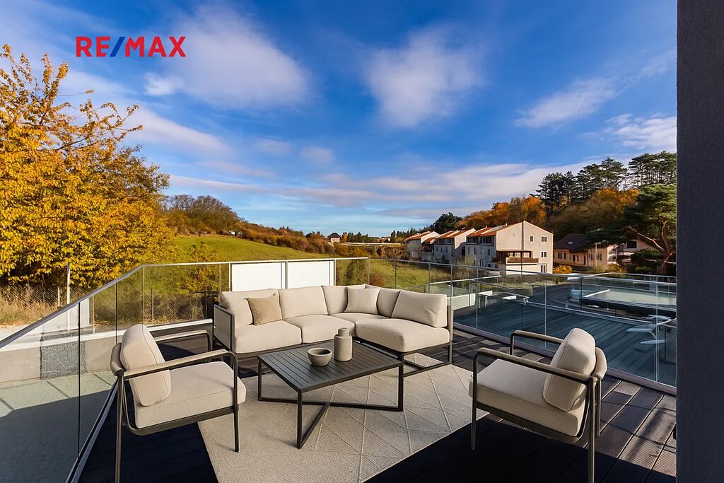 Vybavení domu odpovídá vysokému standardu – klimatizační systém LG s invertorem, kondenzační kotel BOSCH/Vaillant, plastová okna SALAMANDER s trojskly, laminátové podlahy Oak Light, koupelnová keramika Mexen, armatury Grohe, vany Kaldewei, dveře Lorient Jasan grafit, terasy z WPC kompozitu a vstupní dveře Thermo 64 Singen INO.