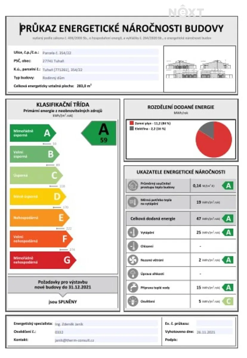 | Třída energetické náročnosti | A - Mimořádně úsporná |
