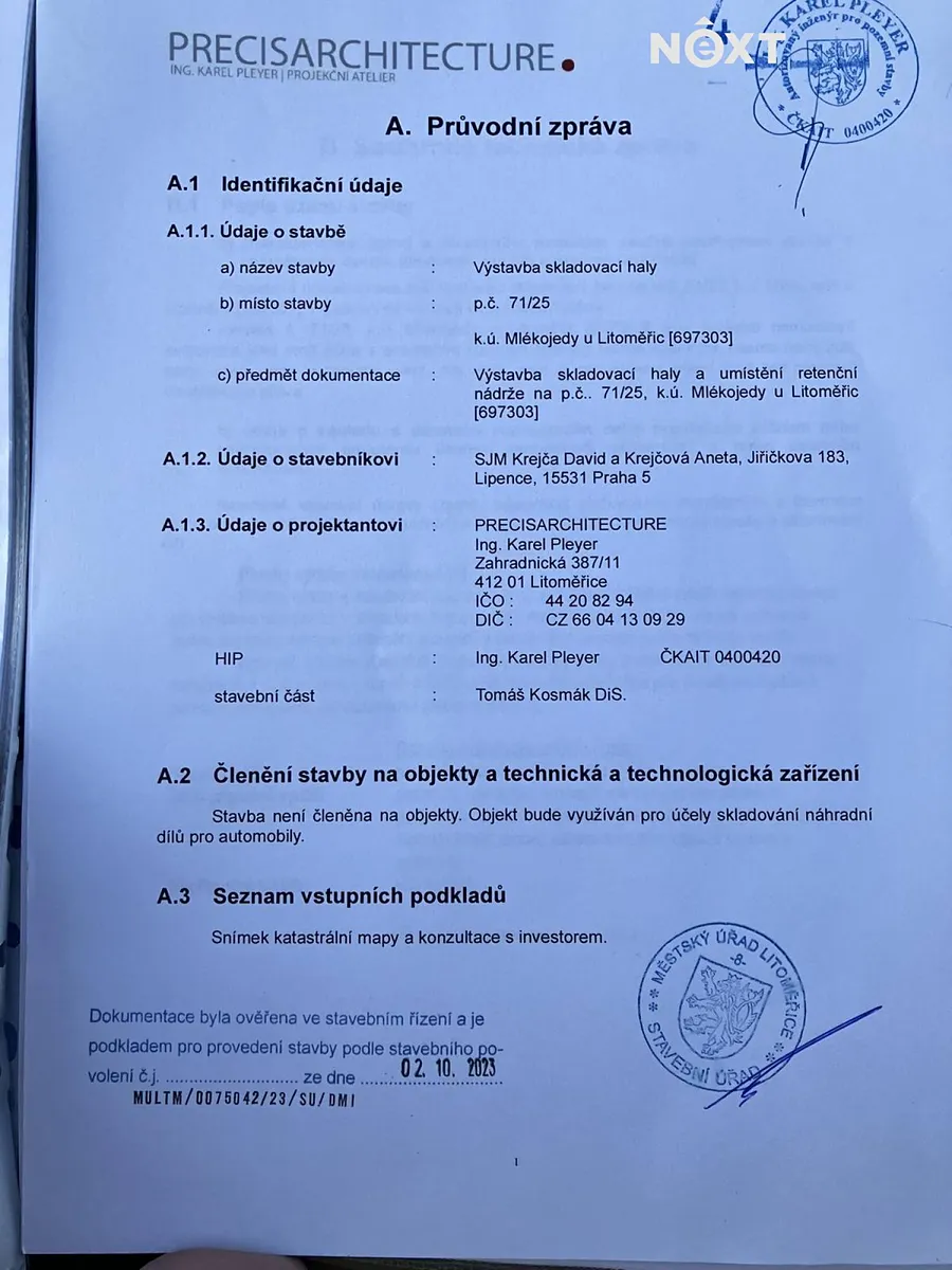 Exkluzivně nabízíme prodej komerčního pozemku v obci Mlékojedy u Litoměřic o výměře 1000 m2. Na pozemek je vydané stavební povolení na skladovací halu o výměře 500 m2. Pozemek se nachází ve vzdálenosti pouhých 6km od dálničního sjezdu na 45. kilometru dálnice D8 a v bezprostřední blízkosti od centra města Litoměřice.