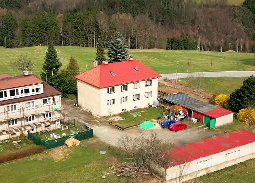 Zděná budova byla postavena cca v roce 1970, má jedno podzemní podlaží, dvě nadzemní podlaží a obytné podkroví. K domu přiléhá pozemek o ploše 695 m2.Celkem se v domě nachází 5 bytových jednotek. Všechny jednotky jsou pronajaté bezproblémovým nájemcům na dobu určitou. Dispozičně jsou byty řešeny jako 3+1. Byt v podkroví má podlahovou plochu cca 86 m2, zbylé byty mají plochu cca 56 m2. Vyjma podkrovního bytu, který je po kompletní rekonstrukci jsou byty v původním stavu. Na střeše je nová hliníková krytina. V domě proběhla oprava omítek ve společných prostorech. Okna jsou dřevěná. Střešní okna nové. Z IS je dům napojen na obecní vodovod a elektro. Odpady jsou svedeny do septiku. Vytápění probíhá pomocí krbových kamen. Ohřev vody přes el. bojlery. Všechny byty mají podružné měření energií.