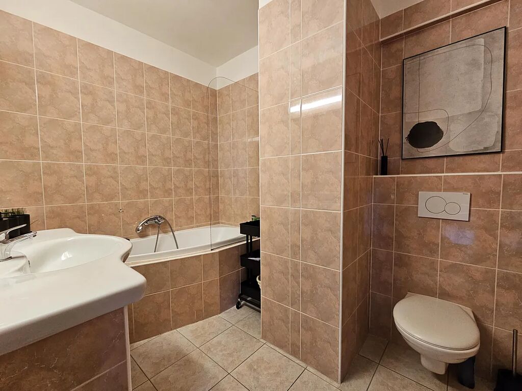 Byt se skládá z předsíně, koupelny s WC, kuchyně a obývacího pokoje s prostorem na spaní, který lze flexibilně oddělit závěsem. Byt je svou velikostí ideální volbou pro jednotlivce nebo pár. V koupelně je rohová vana, kuch. linka obsahuje vestavěné spotřebiče: myčka (60 cm), varná deska a horkovzdušná trouba. Ostatní vybavení dle fotografií v galerii. Vytápění a ohřev vody je centrální. Topení nástěnnými radiátory. Podlahové krytiny tvoří laminát a ker. dlažba. Orientace bytu je na západní stranu. Všechna okna jsou plastová s dvojsklem.