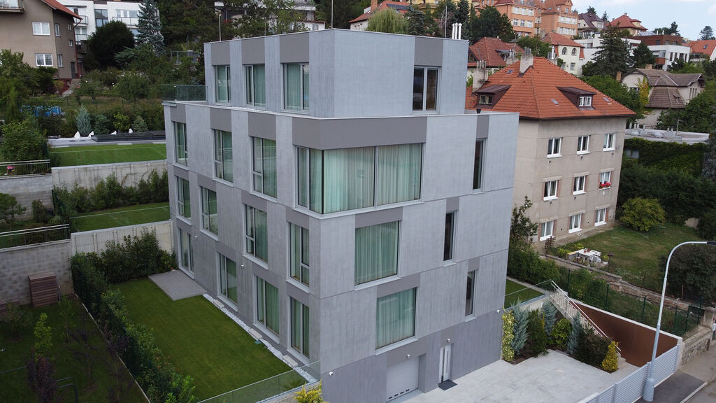 • Designová novostavba s originálním řešením terasovitých zahrad k bytům a bazénem s protiproudem