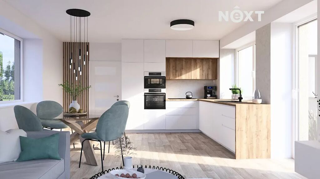 Nabízíme Vám ke koupi byt, který je v tříbytovém rodinném domě. INZEROVANÁ CENA JE ZA KOMPLETNĚ DOKONČENÝ BYT ( bez kuchyňské linky) CENA ZAHRNUJE PROVIZI RK I PRÁVNÍ SERVIS. Byt se nachází v atraktivní lokalitě města Rousínov, jen 20 minut jízdy autem od centra Brna a pouhých 10 minut od Vyškova. Veřejná doprava zajišťuje výborné spojení, díky čemuž je cesta do Brna otázkou 30 minut. Klidná lokalita s veškerou občanskou vybaveností. V ceně jsou dvě soukromá parkovací stání. Interiér bytu je navržen s důrazem na praktičnost a vzdušnost, což se odráží v promyšlené dispozici. Přízemí bytu Vás přivítá prostornou předsíní a elegantním schodištěm. Pod schodištěm se nachází technická místnost. Dále je v přízemí koupelna s WC a sprchovým koutem. Dominantou přízemí je otevřený obytný prostor s kuchyňským koutem. Tento otevřený prostor přes 30 m2 m² je ideální pro rodinné chvíle i setkávání s přáteli. Z obývacího pokoje je pak výstup na terasu 18m2 a privátní zahradu 108m2. Přízemí dále doplňuje pokoj, který můžete využít jako pracovnu nebo hostinský pokoj podle svých potřeb. Podkroví je určeno pro klid a soukromí celé rodiny. Najdete zde prostornou chodbu, která propojuje 3 samostatné neprůchozí pokoje a koupelnu s vanou a wc. Nejmenší pokoj má 12,9 m2 a největší má 16.6 m2. Byt bude dokončen v dubnu 2026, před dokončením se předpokládá personalizace podle kupujícího tzn. kupující si vybírá: podlahy,obklady,dlažby,zařizovací předměty, vnitřní dveře a výmalbu.Energetická náročnost budovy je vedena ve tříde C-úsporná. V ceně 8 490 000,- je již započteno dokončení bytu. Tento byt není jen místem k bydlení – je to domov, kde si můžete splnit své sny o ideálním životě. Kontaktujte nás a přijďte se přesvědčit na vlastní oči. Pro komunikaci uvádějte evidenční číslo zakázky N114639.