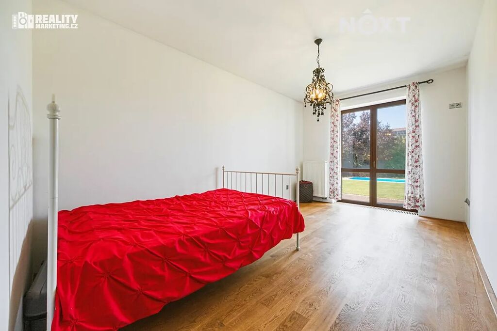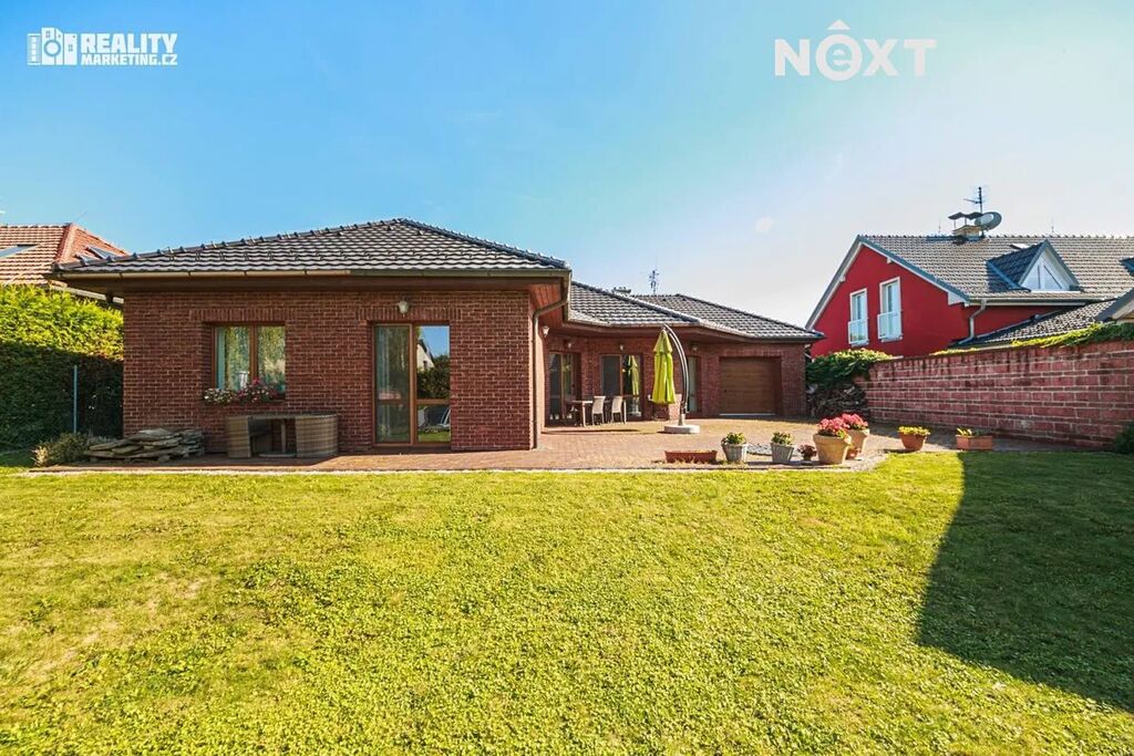 Dům je vybaven moderními technologiemi – podlahové vytápění, tepelné čerpadlo voda–vzduch, centrální vysavač. Na zahradě se nachází krytý bazén 3×6 m, zahradní domek s pergolou, automatický závlahový systém a robotická sekačka. Zahrada je osázena okrasnými dřevinami a poskytuje dostatek soukromí i prostoru k odpočinku.