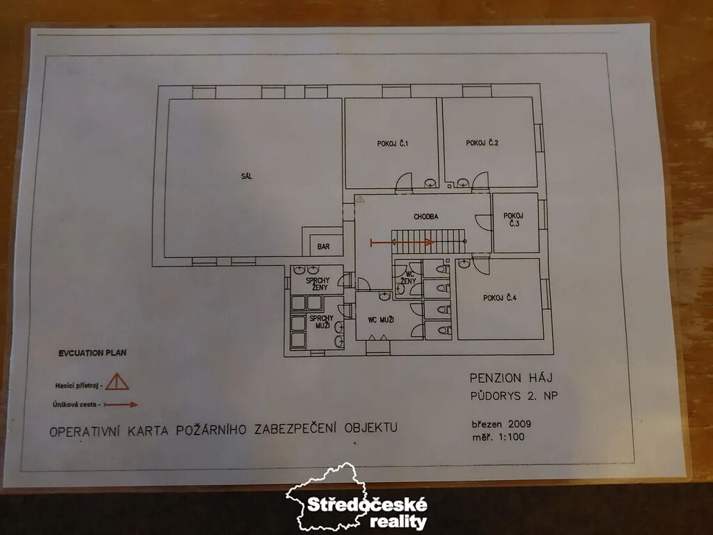 Jedná se o plně zařízenou nemovitost s kapacitou 40 lůžek (10 pokojů), prostorného bytu 4+kk o výměře 80m2 a gastronomického prostoru (kuchyň, bar a jídelna s krbem).